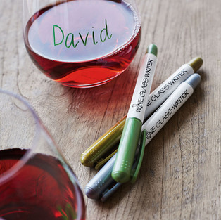 The Wine Glass Writer is a unique way to keep wine glasses from getting all mixed up. It's so much more streamlined than those floppy charms.